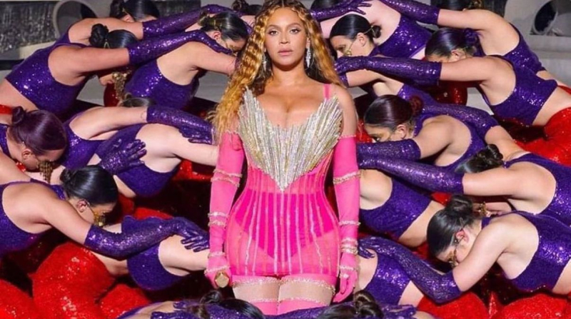 Бейонсе выступала в металлическом мини-платье бренда в туре Renaissance World Tour.