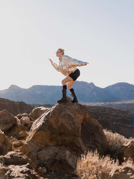 40-річна артистка попозувала на тлі вулкана Тейде на острові Тенерифе, ефектно вигинаючися на скелях.