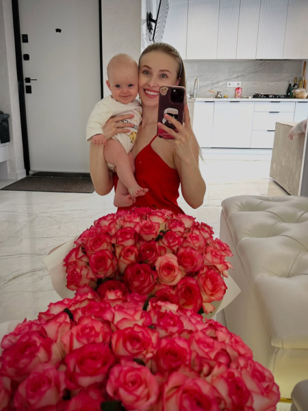 У своєму Instagram вона показалася з майже 5-місячною донечкою, ім’я якої не розголошує, біля чималого букета троянд. Мама з дитиною усміхнено попозували перед дзеркалом, радіючи квітам.