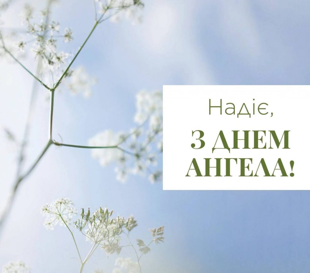 - Дорога Надіє, з Днем ангела тебе! Нехай твоє серце завжди буде сповнене надії, а життя — світлим і добрим. Бажаю здоров’я, тепла і щирих друзів. Нехай у твоїх очах завжди світиться радість, а душа буде спокійною. Будь щасливою щодня!