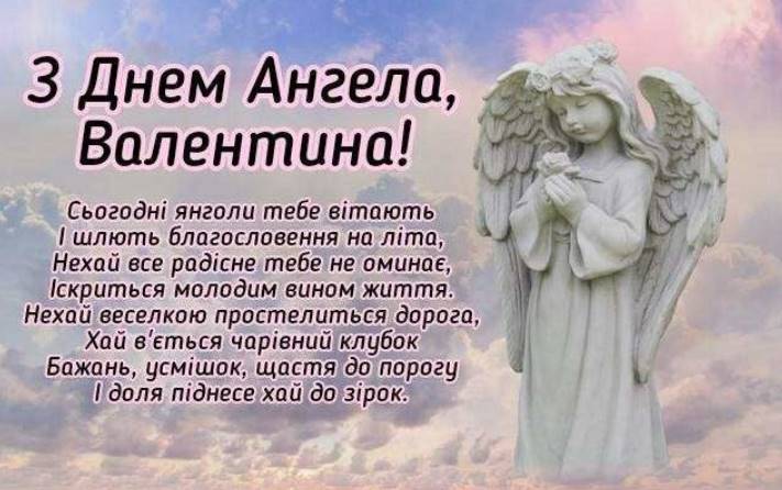 “З Днем ангела, дорога Валентино! Хай у твоєму житті буде більше світла, любові та віри. Твій ангел нехай завжди буде поряд і оберігає тебе від усіх негараздів.”